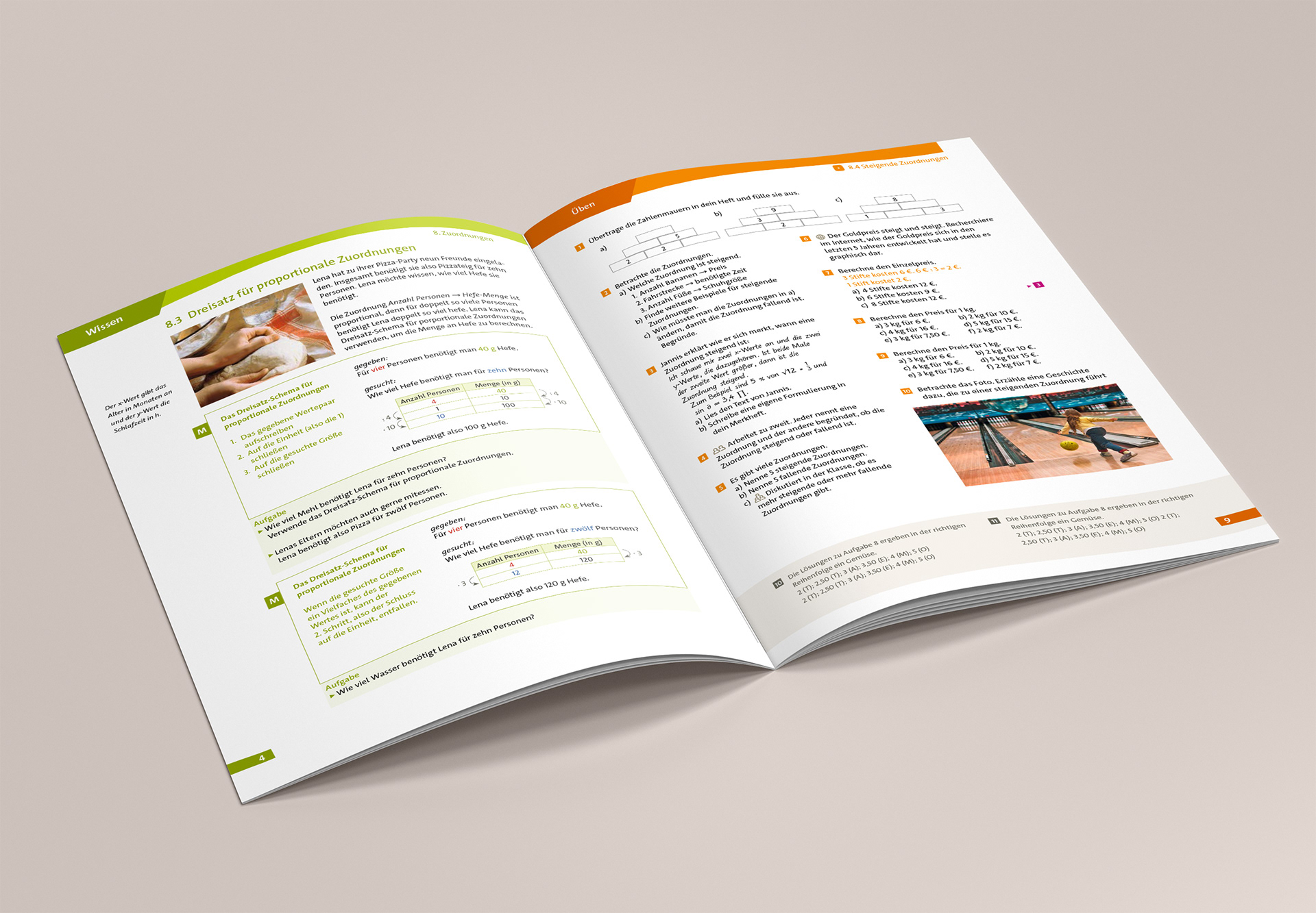 Innenseitenentwicklung für ein Mathebuch. Festlegung von Satzspiegel, Schriften, Farben und noch viel mehr.